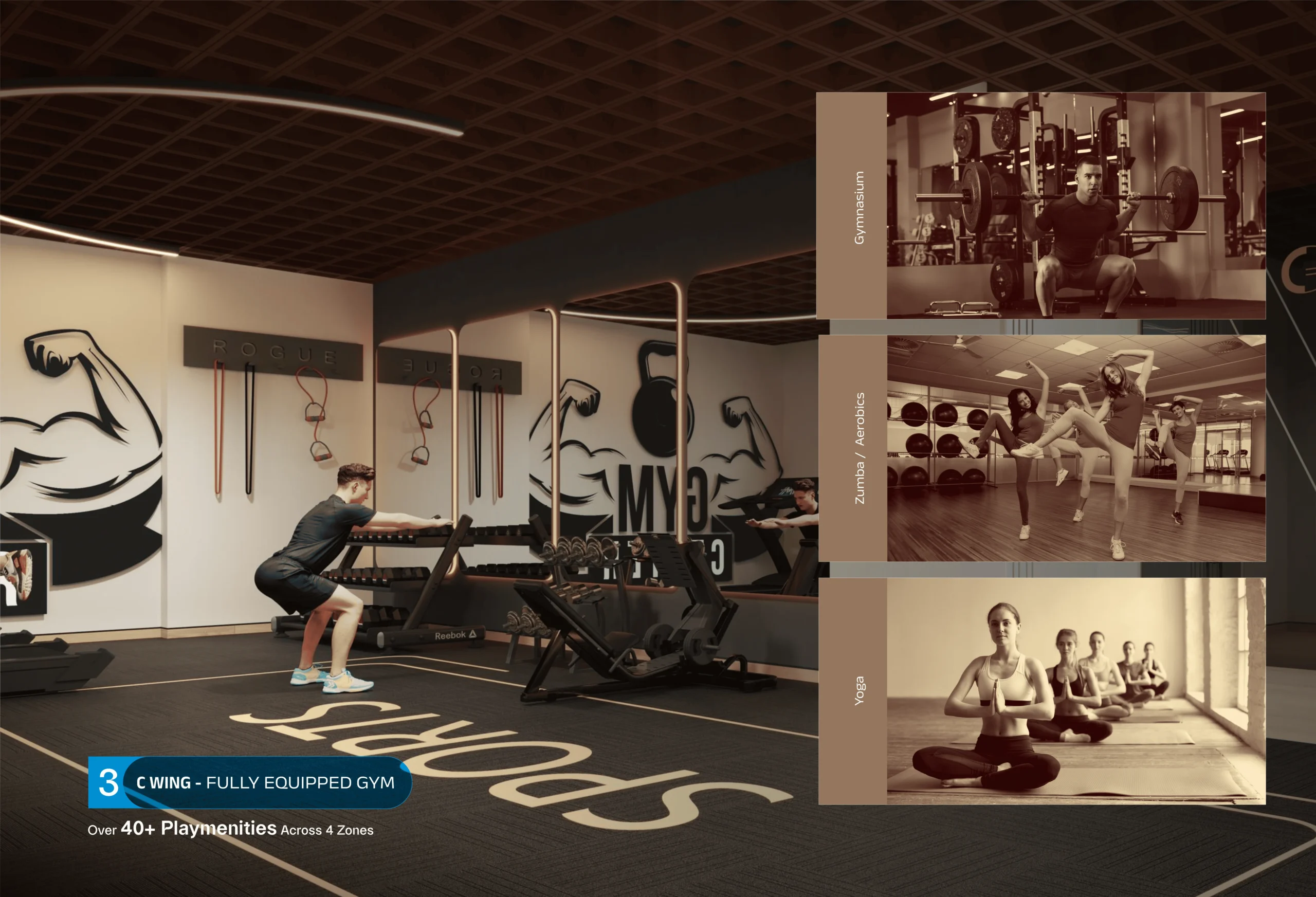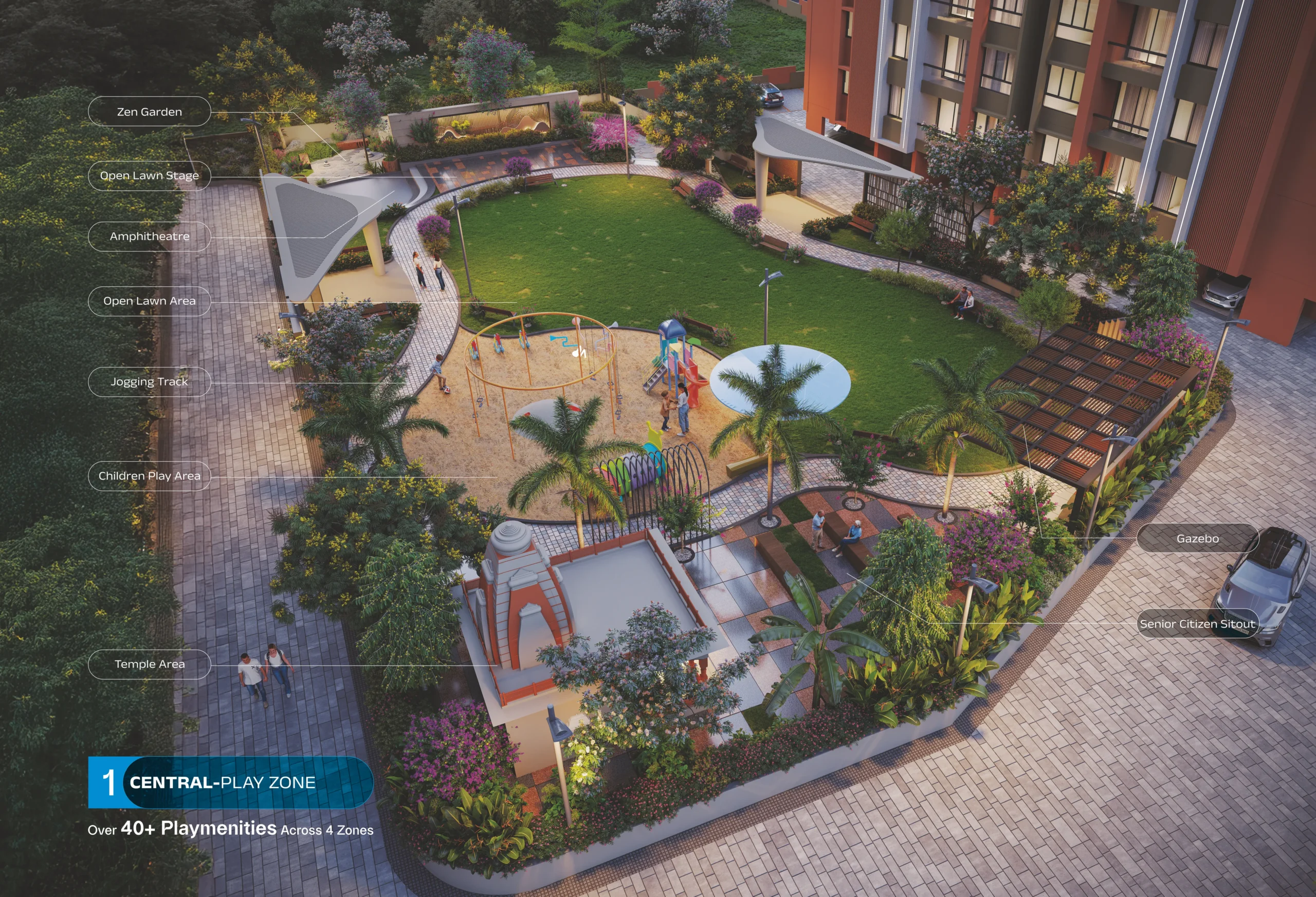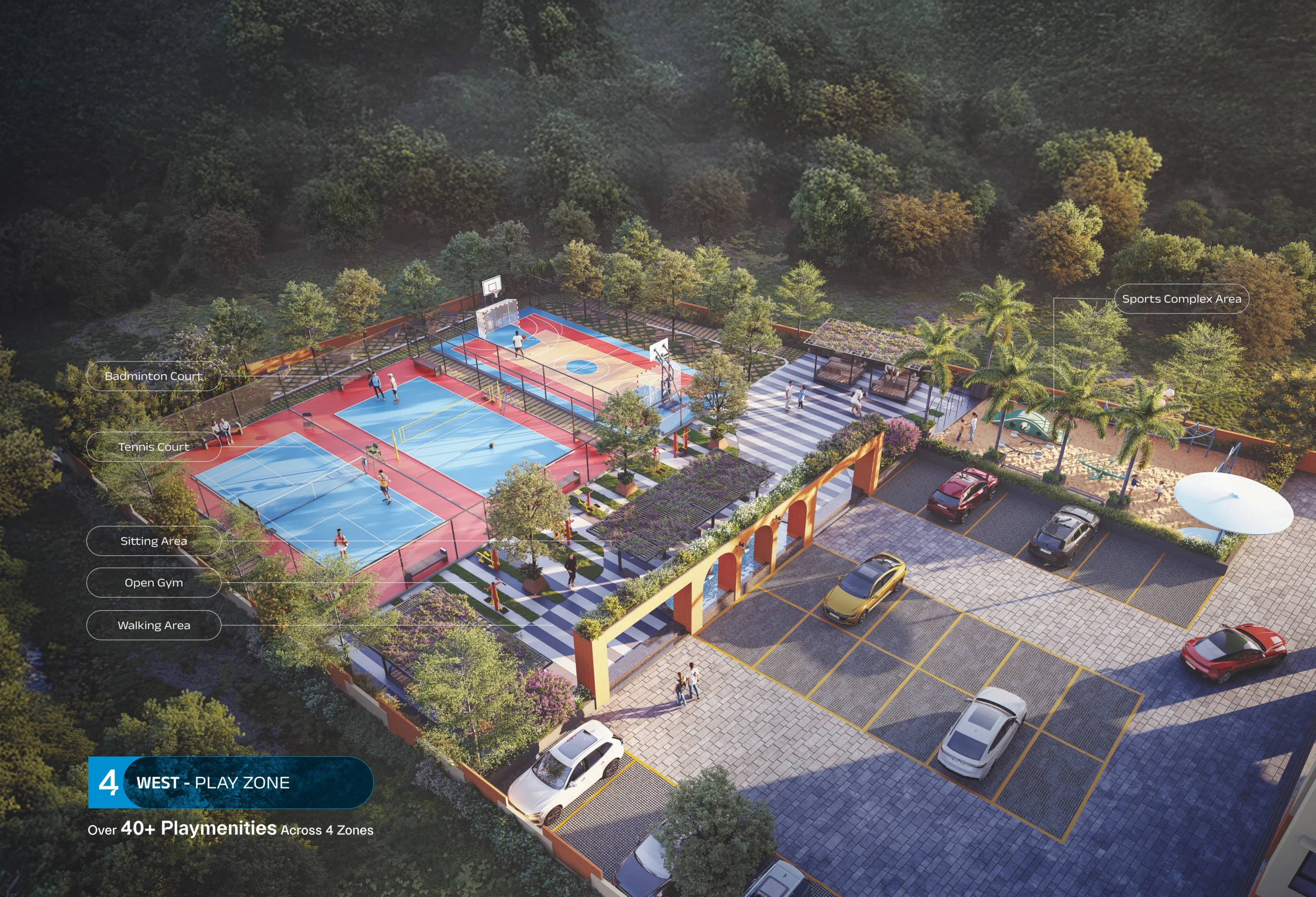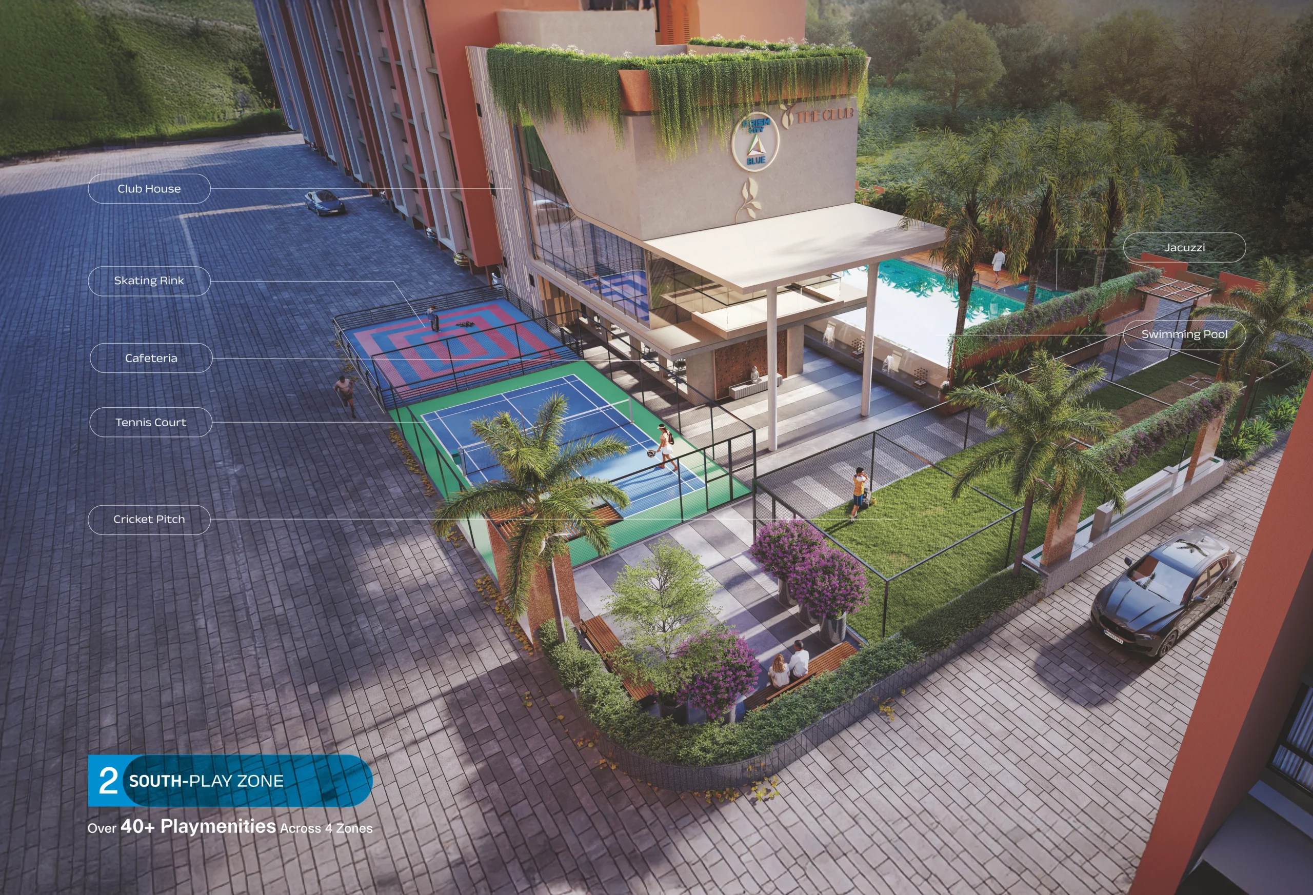 Playmenities, not amenities! We oer thoughtfully designed amenities that go beyond leisure. That’s why we call them Playmenities; spread across 4 vibrant zones. Each space here is designed for pure action, fun, and adrenaline rush.