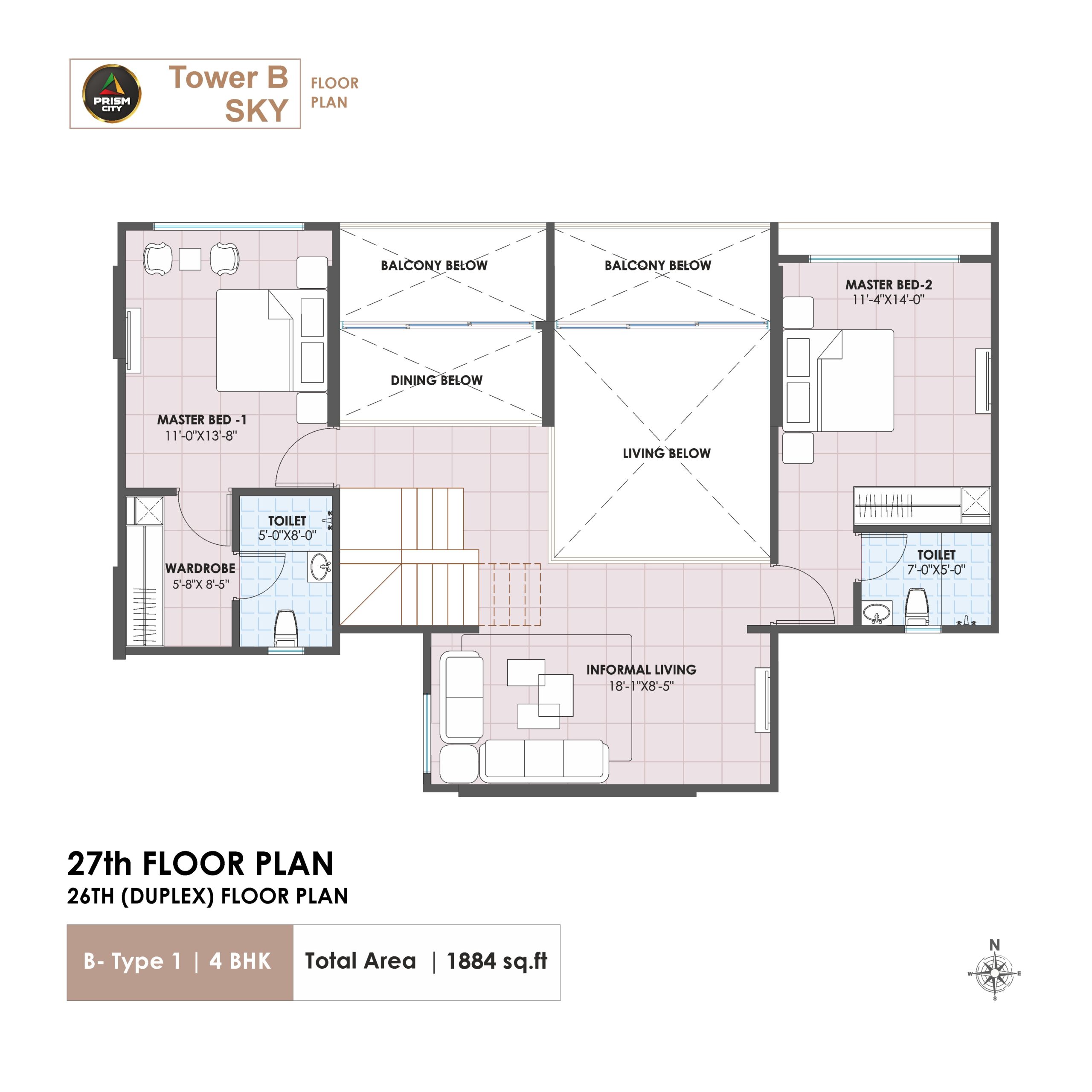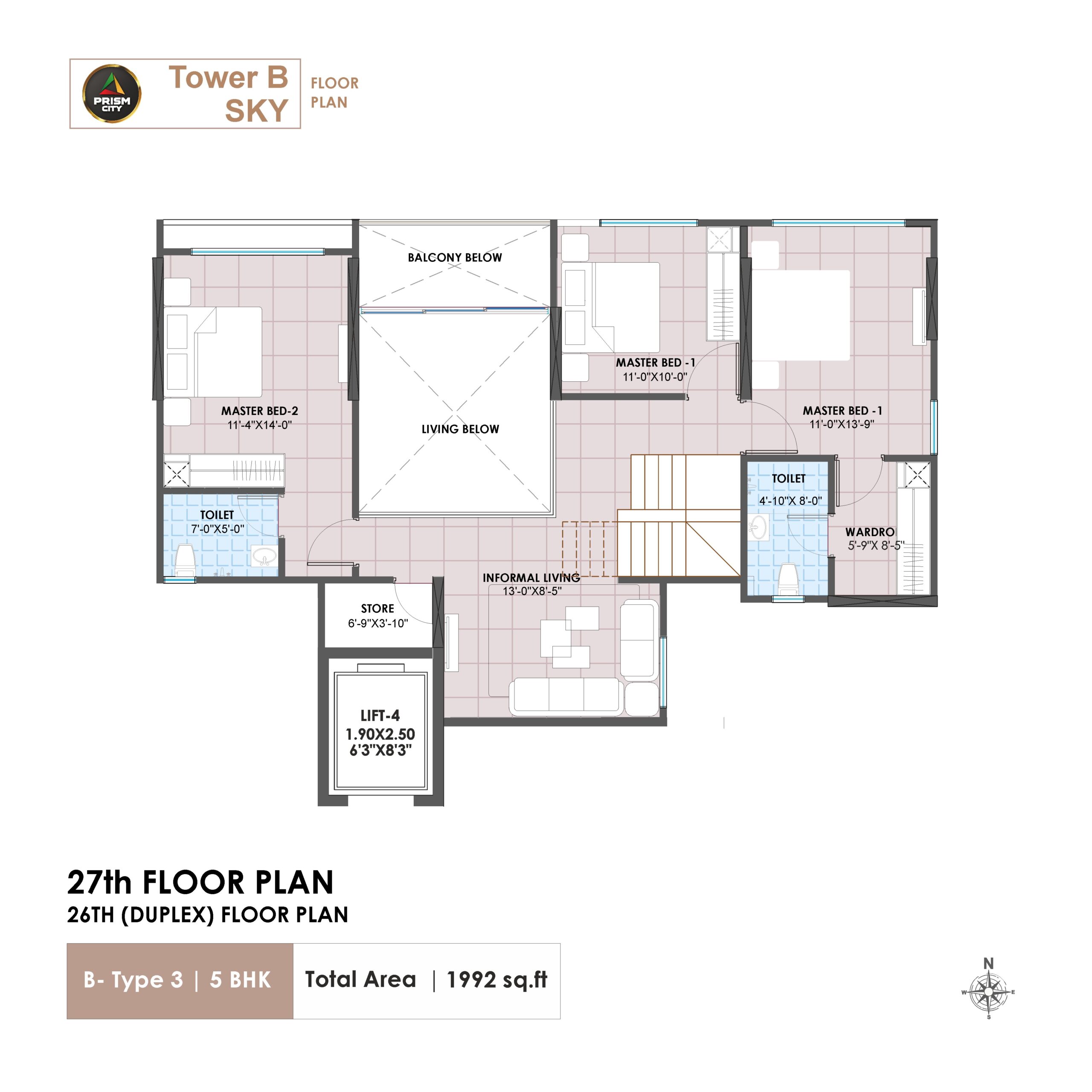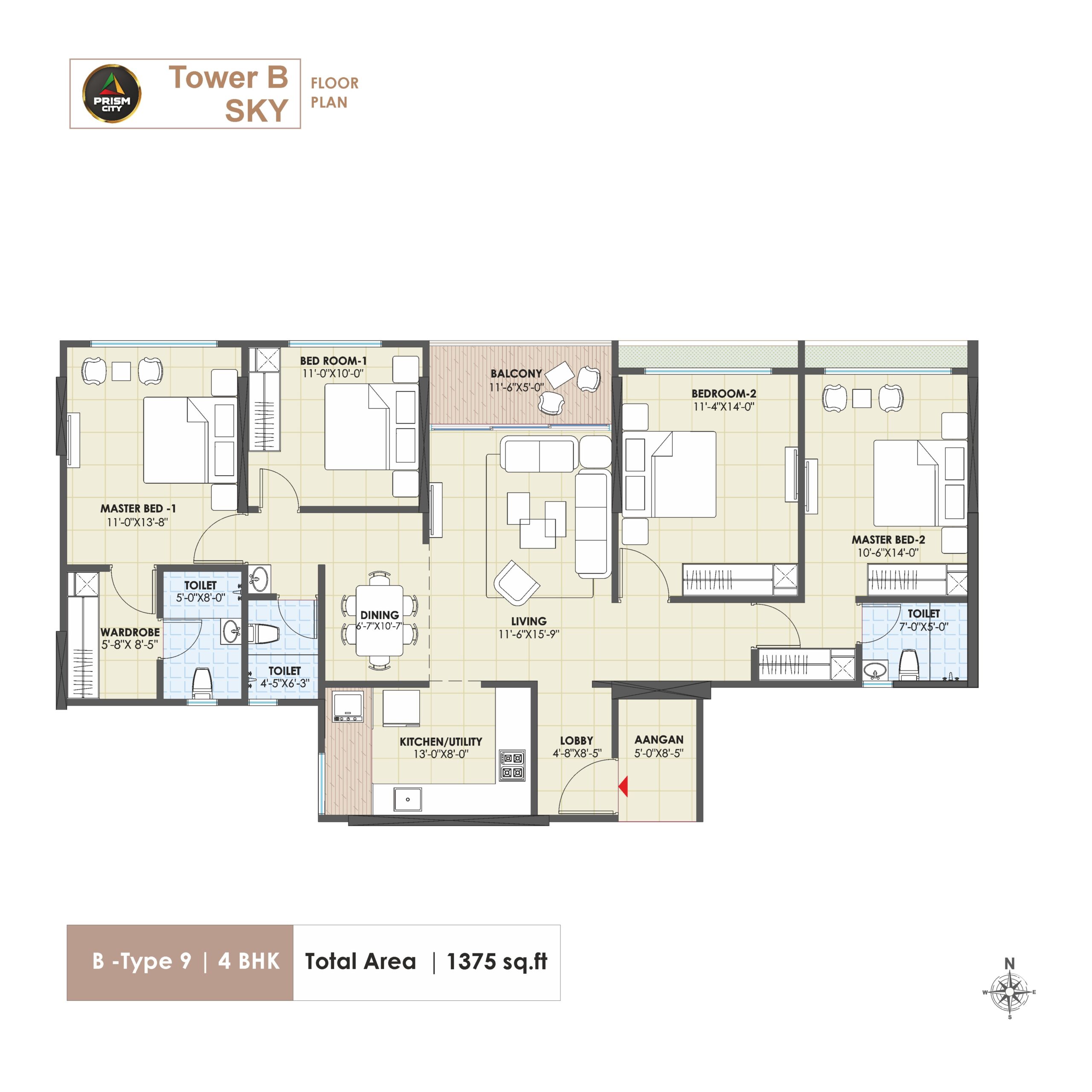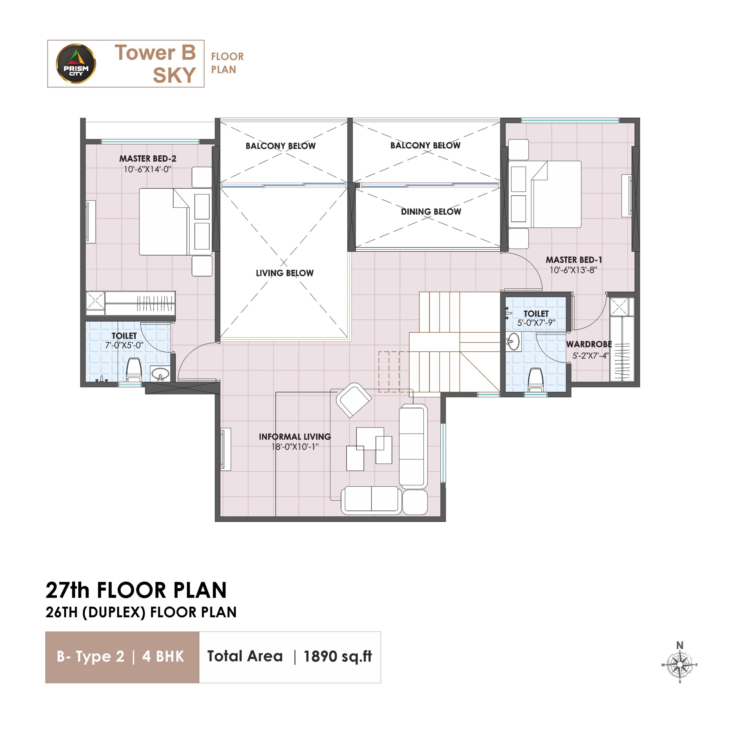 This isn’t just a residential project; this is a thoughtfully designed ecosystem where architecture, nature, wellness, and recreation come together. Spread across 5 acres, Prism City Blue oers 2, 3 and 4 BHK homes and Duplexes. Thoughtfully crafted, these homes oer innovative features such as aangan and walk-in wardrobe. You can make the most of Charholi’s pleasant weather in these Vastu compliant, well-ventilated homes that enjoy neighbourhood of Indrayani river